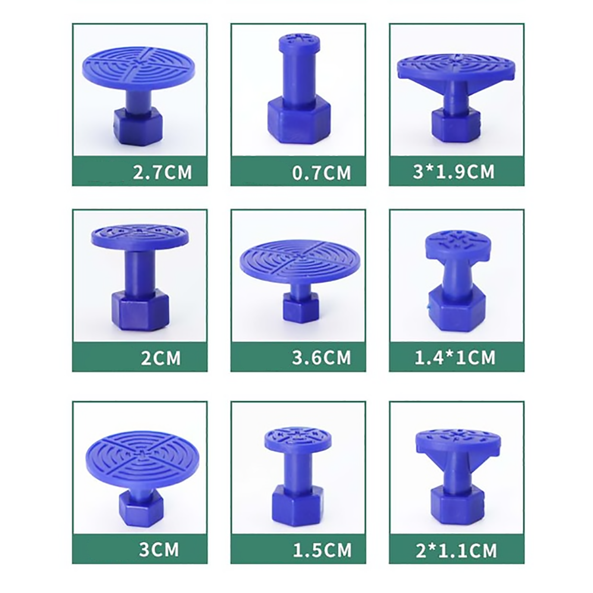 В наборе Т-образный инструмент и 18 синих накладок разной формы и размера