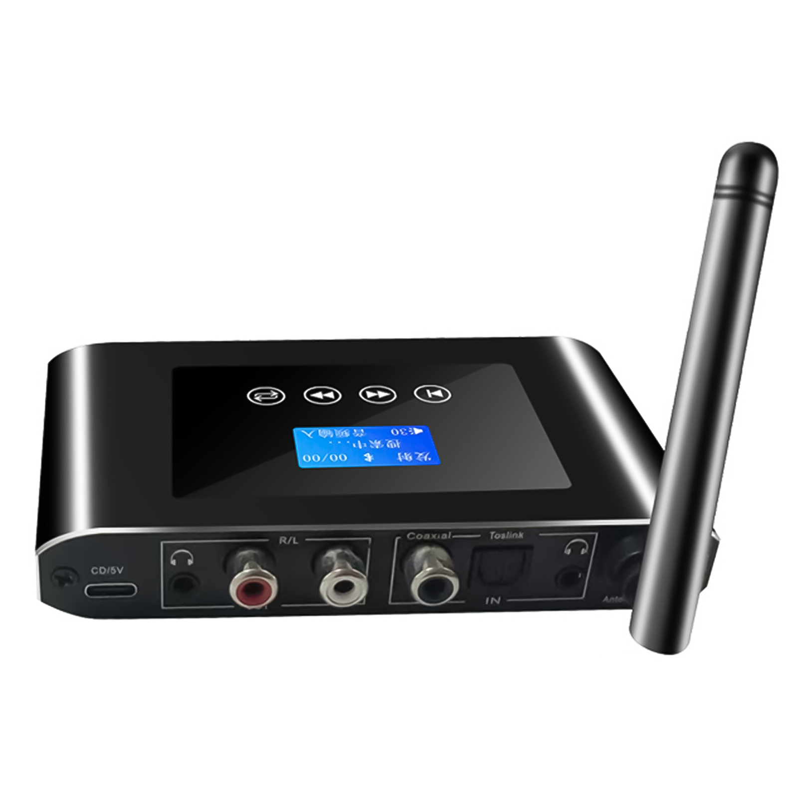 Аудио адаптер NFC T38 Bluetooth 5.1 применяется для приема и передачи аудио сигнала на расстоянии 15 м. Компактный блютуз приемник для аудиосистемы, проекторов, телевизоров, компьютеров также может использоваться в мультимедийной системе автомобиля для расширения ее функционала. Беспроводной аудио адаптер оснащен светодиодным дисплеем с подсветкой, на котором видны проигрываемые треки, выставляемые настройки. Адаптер оснащен модулем NFC, благодаря которому процесс соединения с телефоном ускоряется. Блютуз аудио ресивер также можно подключать проводным способом – для этого в наборе есть USB кабель, провода-тюльпаны, предусмотрены коаксиальные и оптические входы. Bluetooth аудио модуль работает от встроенного аккумулятора.
