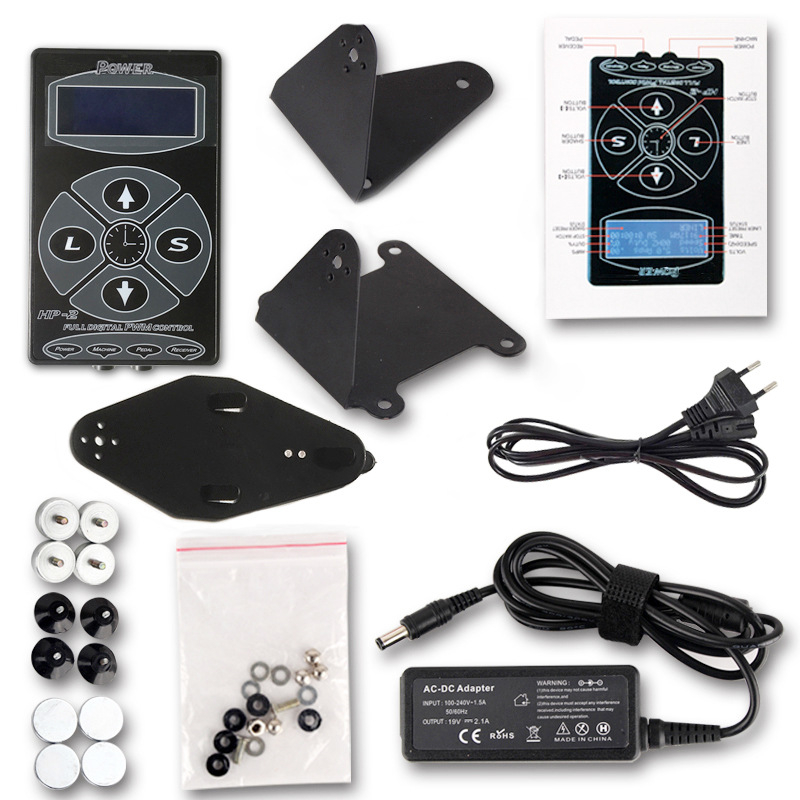 Блок питания для тату машинки HP-2 Hurricane Power используется для подачи питания на устройство. Татуировочное оборудование выполнено из прочного пластика черного матового цвета. На лицевой панели находится цифровой экран с подсветкой, на который выводится подаваемое на машинку ток и напряжение, а также нагрузка, скорость. Настройки выставляются при помощи кнопок на корпусе. Доступно 2 режима работы, регулировка частоты прокола, изменение мощности. К блоку питания можно подключить педаль, с помощью которой можно управлять машинкой. Есть энергонезависимая память, в которой сохраняются ключи и настройки для 4 машинок. Поддерживается таймер для контроля рабочего процесса.