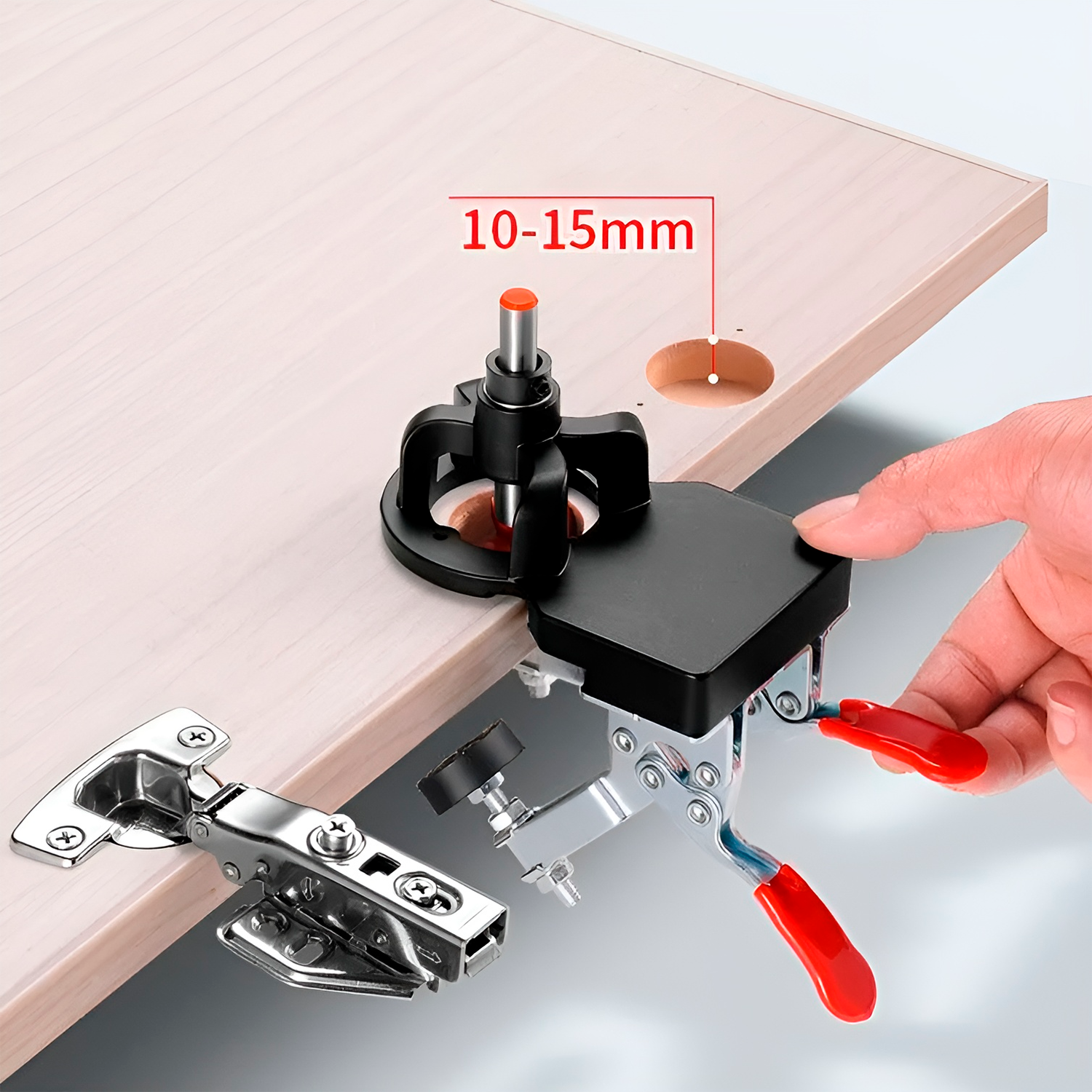 1. Установите шаблон, отрегулируйте глубину сверления, которая обычно составляет 12-13 мм, а затем зафиксируйте ограничительное кольцо.
