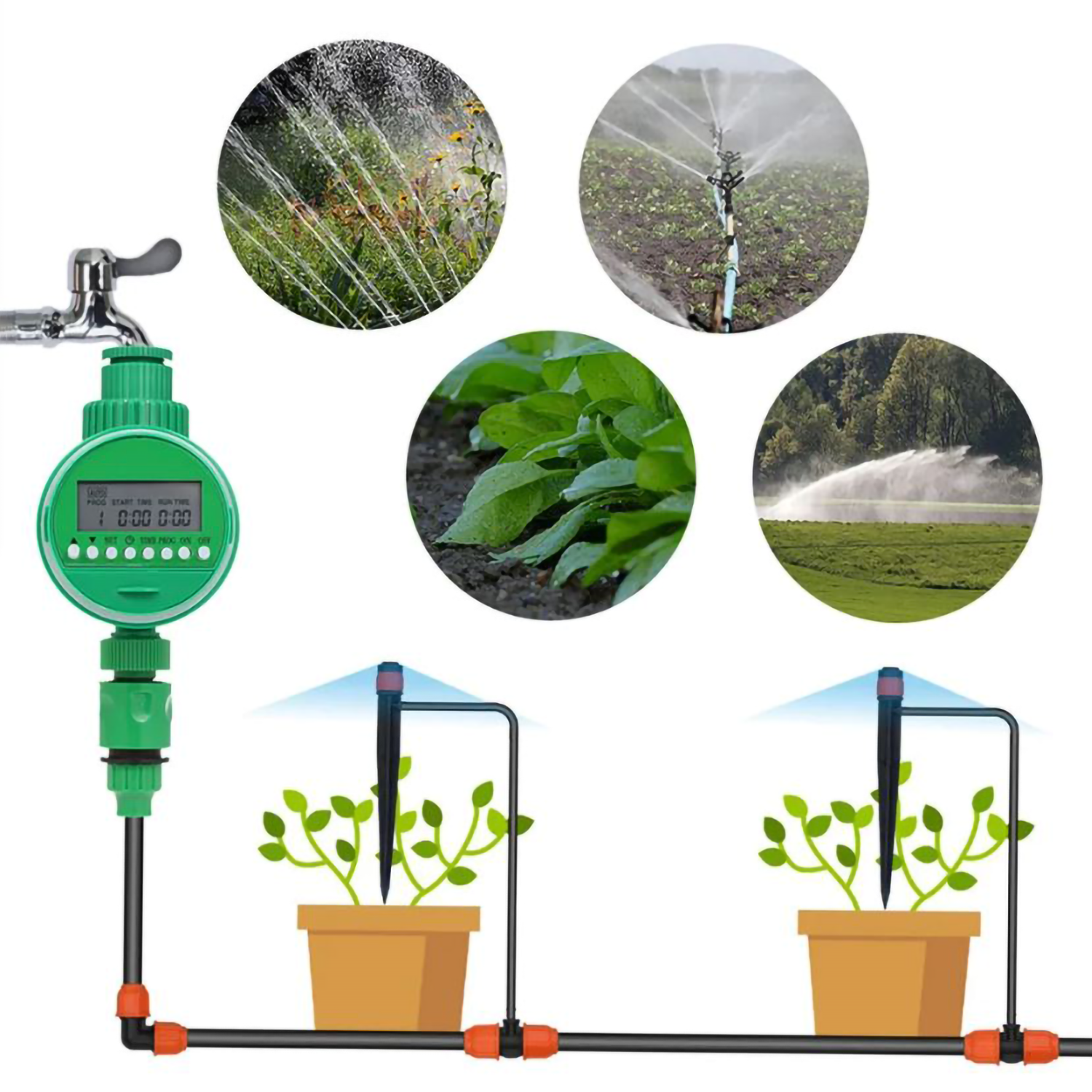 Этот таймер отличается простотой, легкостью установки и программирования. Там нет необходимости в инструментах. Просто установите время начала, продолжительность полива и частоту. Большой, легко читаемый ЖК-экран облегчает программирование.