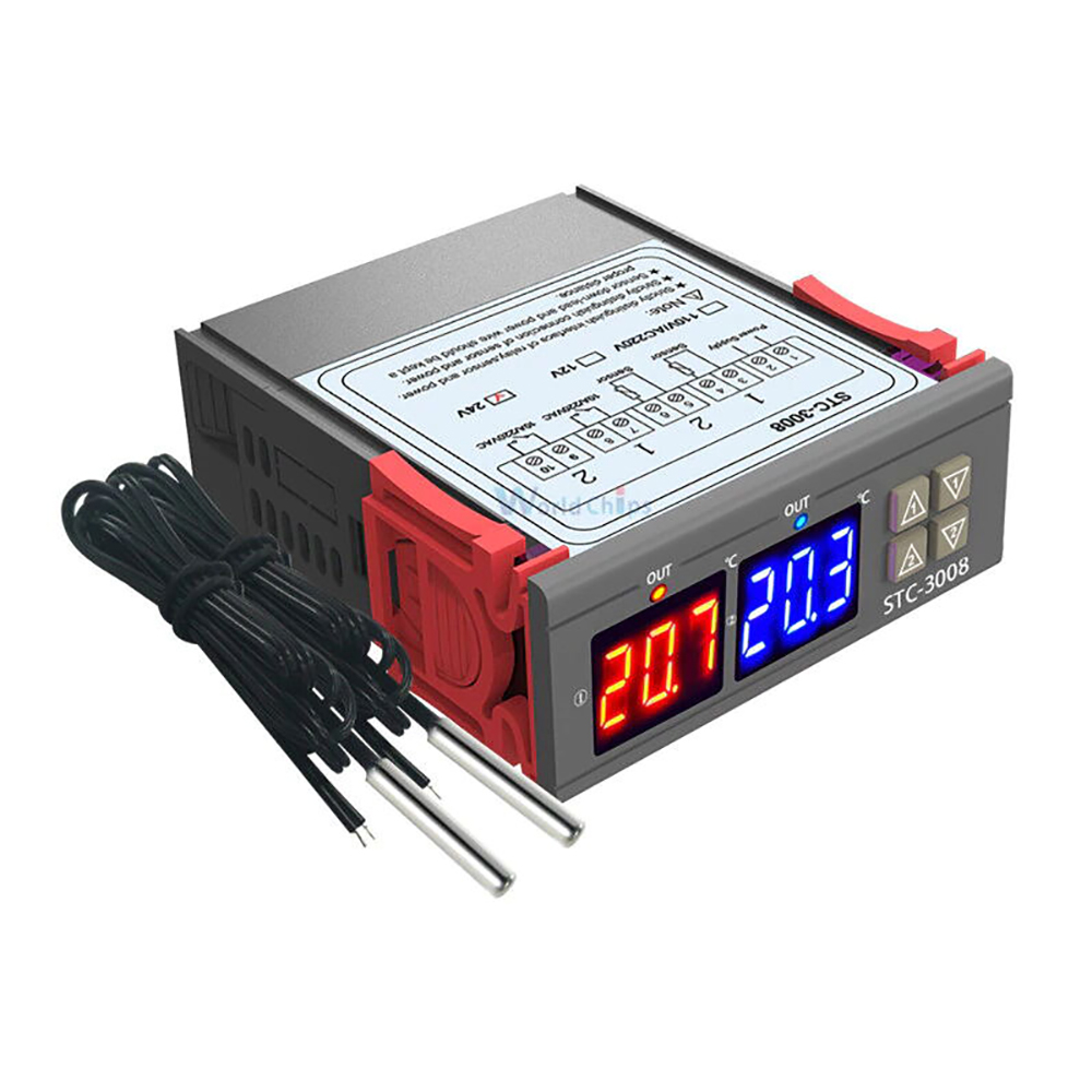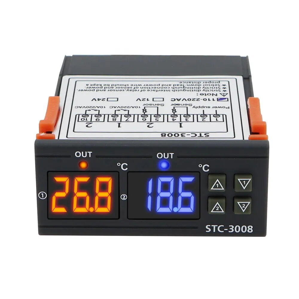 Цифровой терморегулятор/термостат встраиваемый, программируемый Stance-3008 220Виспользуется для измерения температур в диапазоне от -55 до +120 градусов с высокой точностью. Электронный терморегулятор имеет удобную конструкцию для встраивания в корпус холодильника, аквариума, инкубатора, теплицы и других объектов, где требуется контроль температурного режима. Передняя панель при монтаже остается снаружи для контроля над отображаемой температурой и выставления настроек. Контроллер температуры оснащен двумя цифровыми дисплеями с подсветкой, рядом с ними расположены клавиши управления. Терморегулятор термостат поддерживает два режима работы в паре с нагревателем или охладителем. Терморегулятор питается от сети 220В.