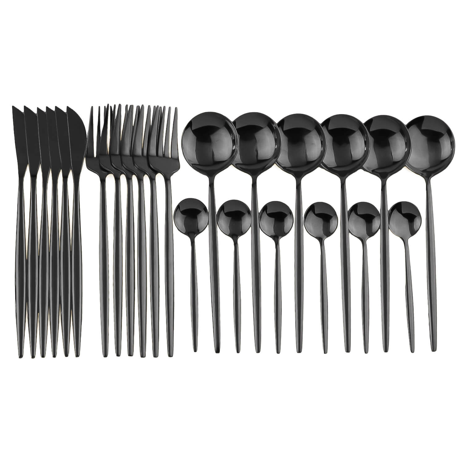 - Комплектация6 столовых ножей; 6 столовых вилок; 6 столовых ложек; 6 кофейных ложек