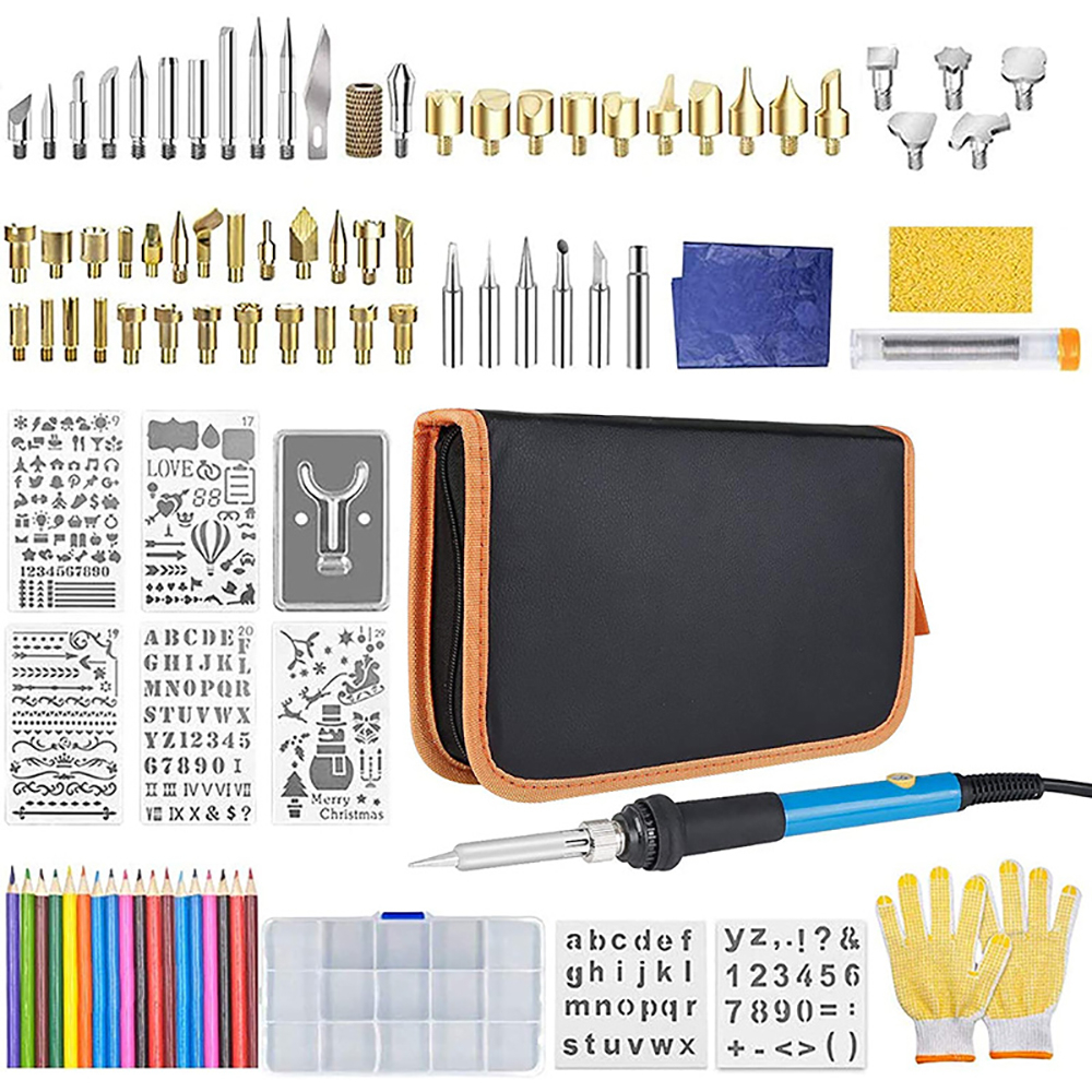 Набор для выжигания Carvy Art 128 предметов используется при работе с деревом. Выжигатель по дереву с насадками – хороший вариант для обучения работе с древесиной для взрослых и детей. Набор включает эргономичный выжигатель в виде ручке, на рукоятке которой находится кнопка включения, с комплектом разных по толщине и форме насадок, а также трафаретами. Набор для выжигания и росписи поставляется в удобном текстильном кейсе на молнии. Электроприбор для выжигания по дереву разогревается до 450 градусов и аккуратно работает с древесиной. Для безопасной работы набор для выжигания по дереву оснащен защитными перчатками.