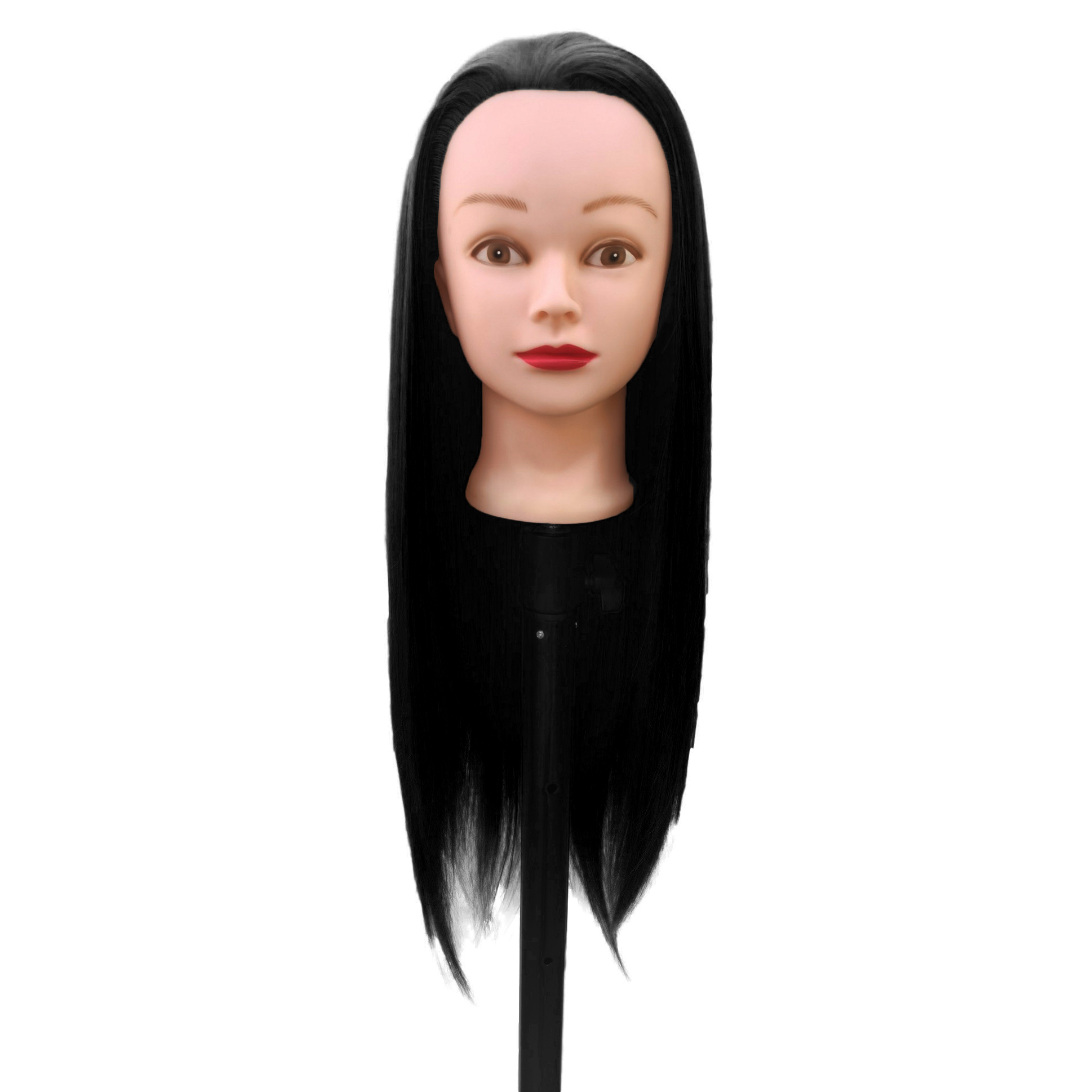 Манекен голова для причесок Braid с черными волосами 65 см с кронштейном