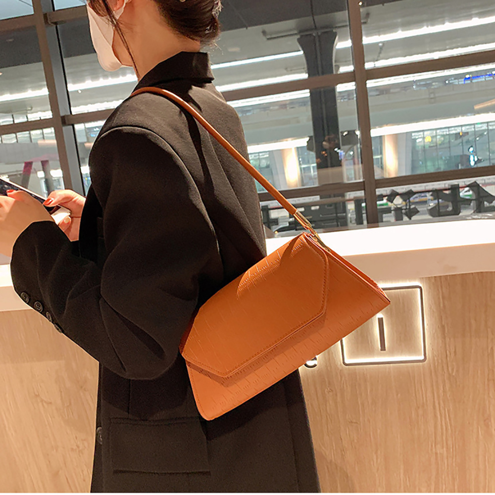 Сумка-багет женская Stella коричневая в форме трапеции – идеальный вариант для выхода на праздничные мероприятия и ежедневной носки. Сумка женская выполнена из белой экологической кожи, которая не требует особого ухода. Мягкая экокожа хорошо переносит холод и жару, не трескается в минусовую температуру, не выцветает под действием ультрафиолета и не боится дождя или снега. Сумка через плечо имеет прочный каркас, поэтому не теряет своей формы. Клапан застегивается на магнитные замки. Длина ручек не регулируется. Прочная хлопковая подкладка не разрывается из-за острых предметов. Внутри сумки-багета есть объемный отсек и небольшой кармашек на молнии для мелочей.